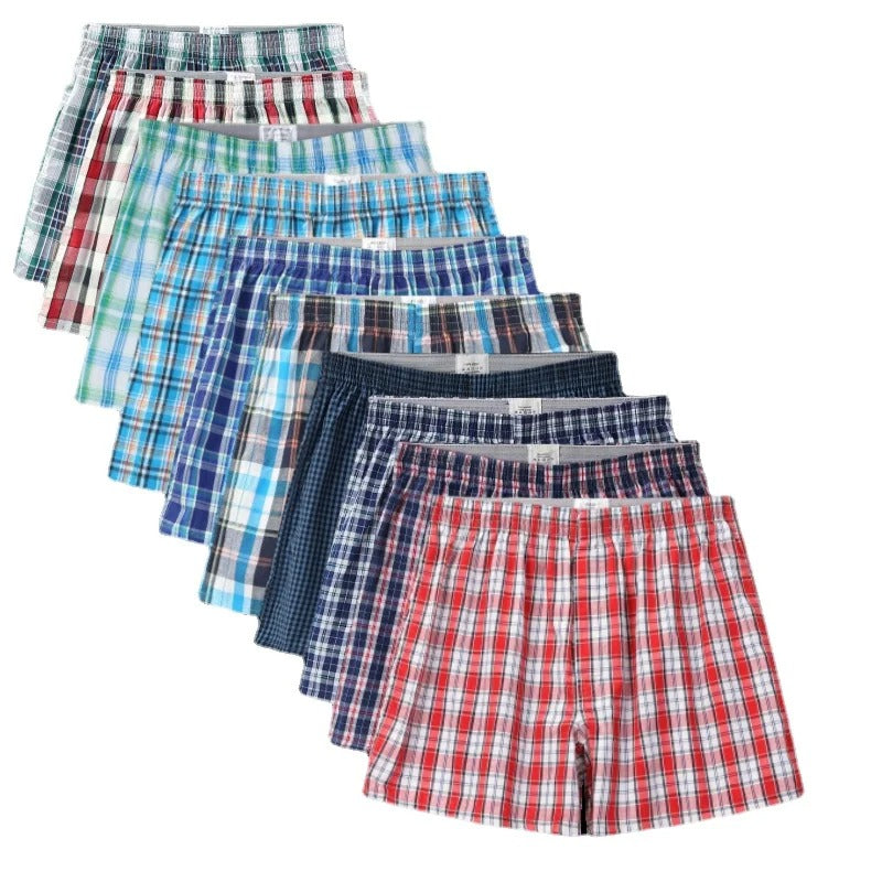 Cada paquete incluye 1 Lote de 8 Boxers Masculinos de Algodón Suave a Cuadros (plus size disponible) con una garantía incondicional de 30 días. Disfruta de 100% satisfacción o la devolución de tu dinero—sin riesgos.